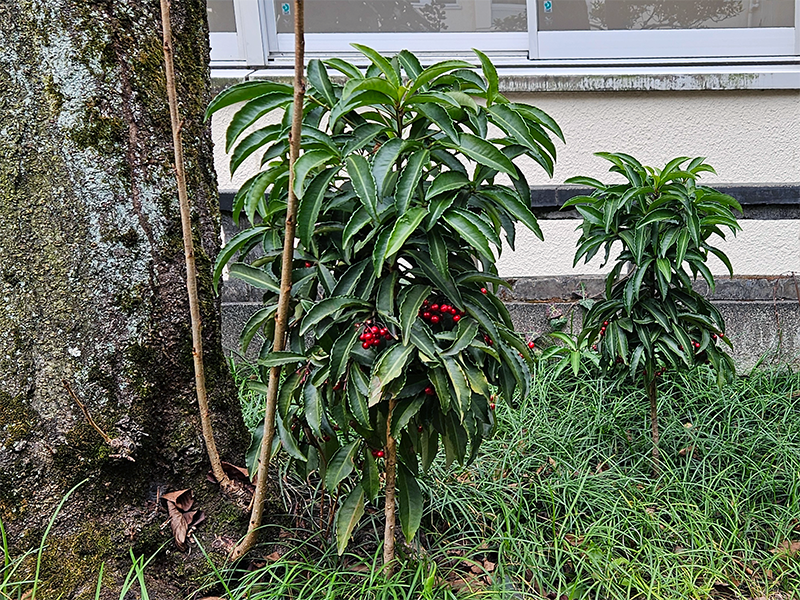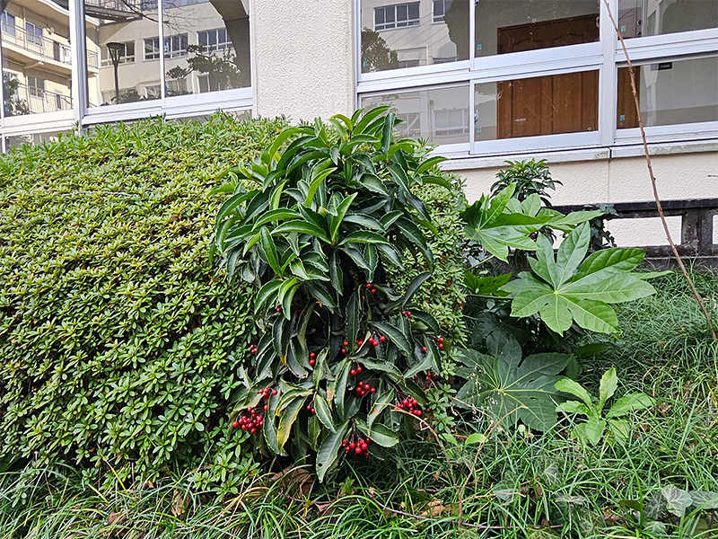 校舎の中庭に万両(マンリョウ)があるのをご存知でしょうか。